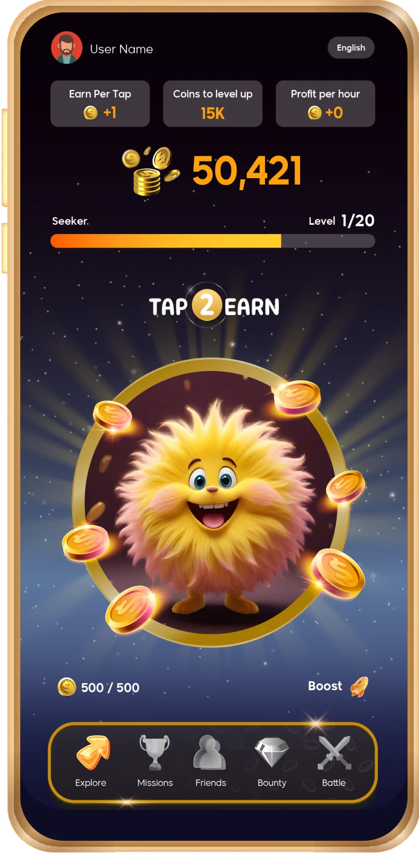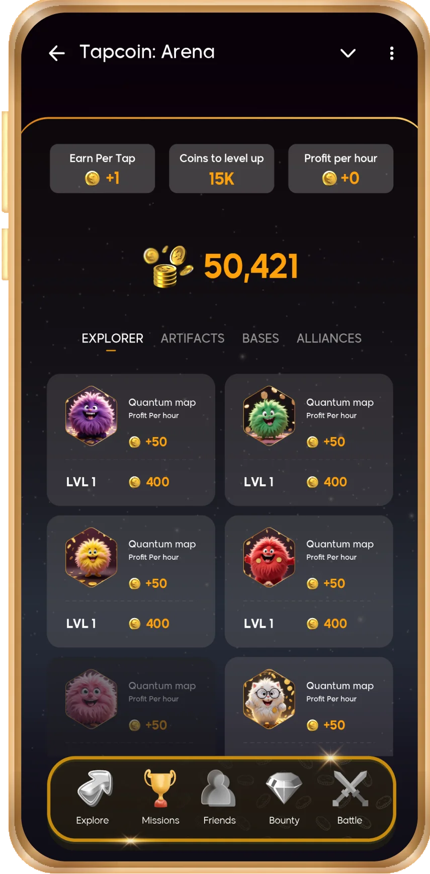 Upgrade your mining slots with powerful booster packs to unlock unlimited tapping.