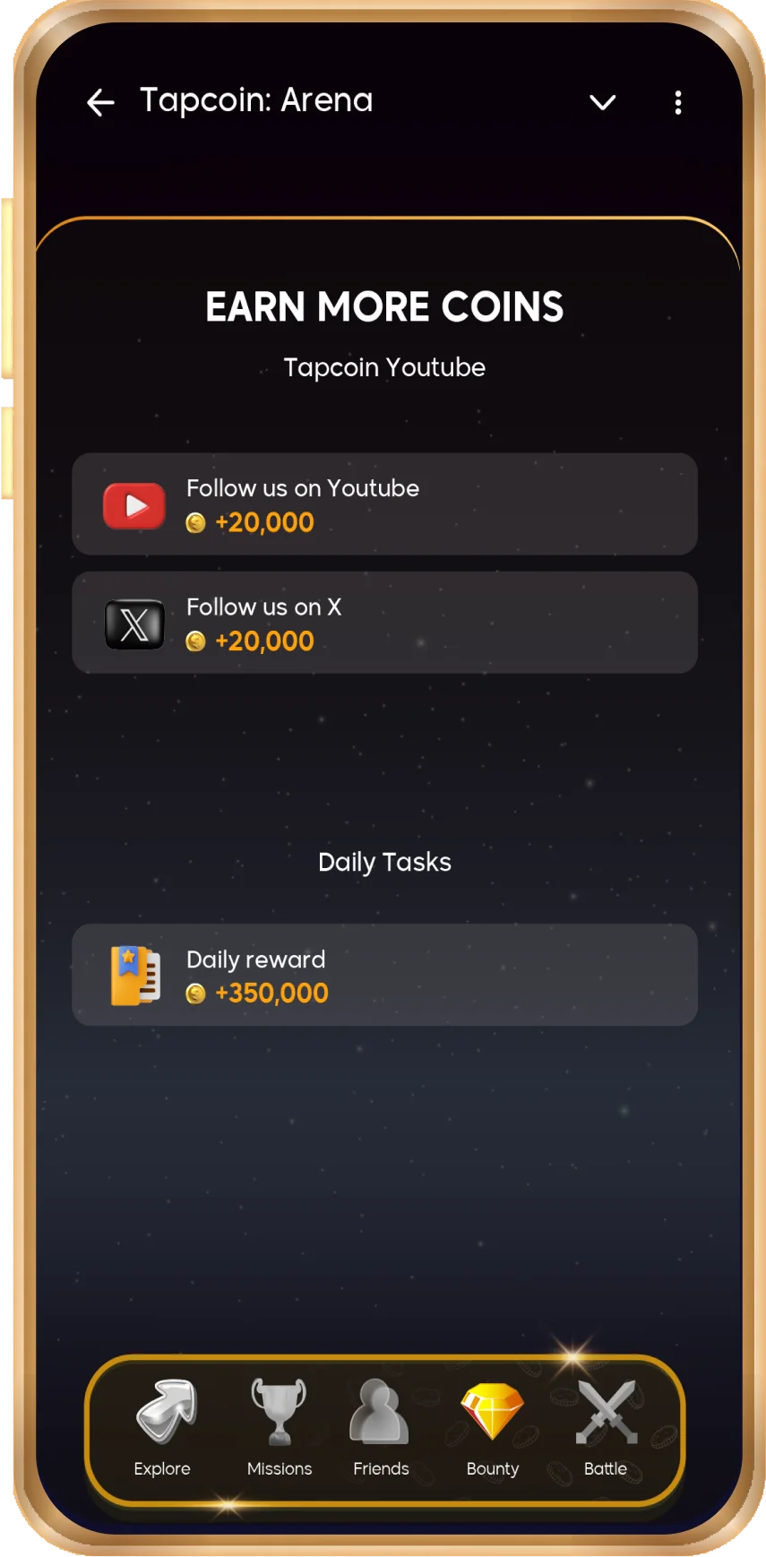 Complete daily tasks, invite friends, and follow us on social media to earn extra coins